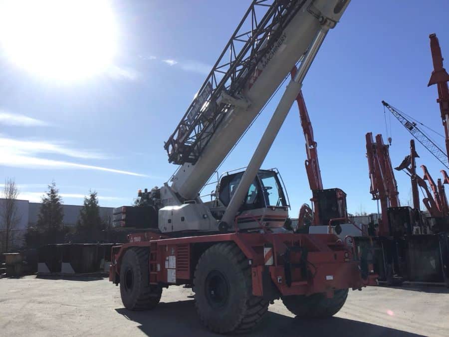 Triad Machinery Rental Fleet 2022 Link-Belt 100RT crane equipped with two piece bifold fly, 60 ton three sheave hook block and 12 ton hookball.