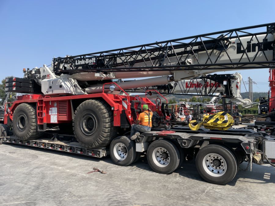 Triad Machinery rental fleet 100RT Crane equipped with 12 Ton Ball, 60 Ton Hook Block and 2 piece fly.