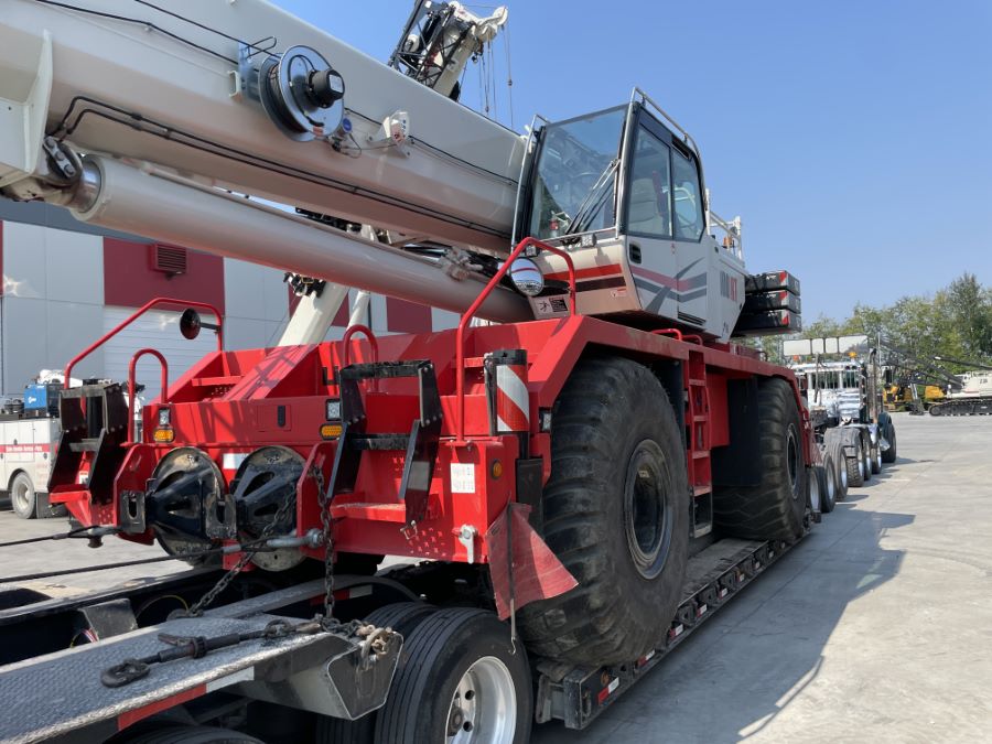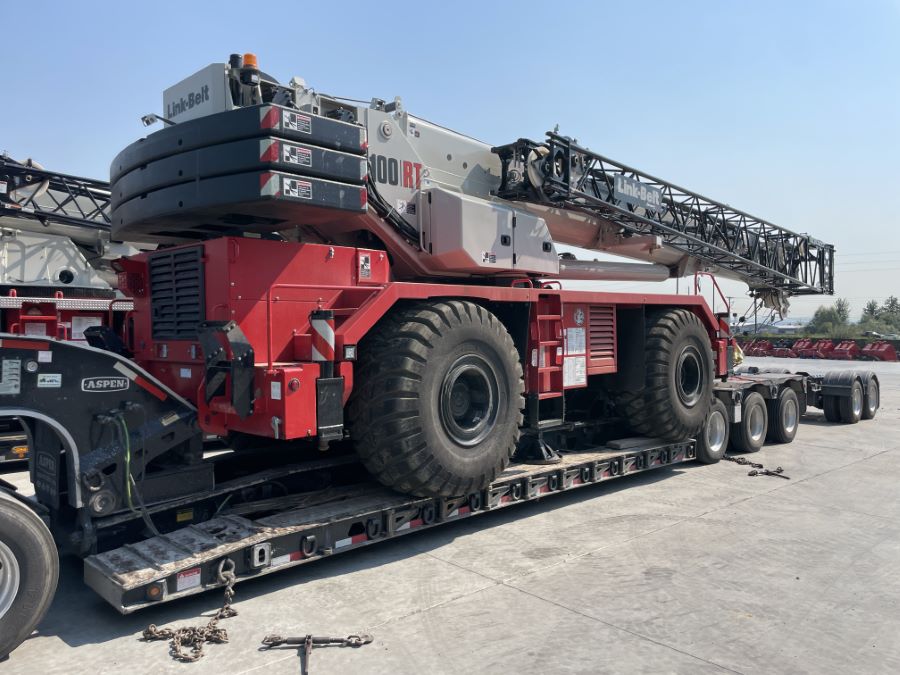 Triad Machinery rental fleet 100RT Crane equipped with 12 Ton Ball, 60 Ton Hook Block and 2 piece fly.