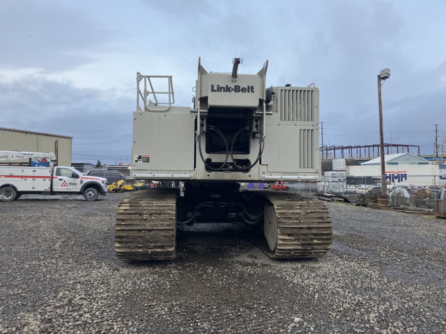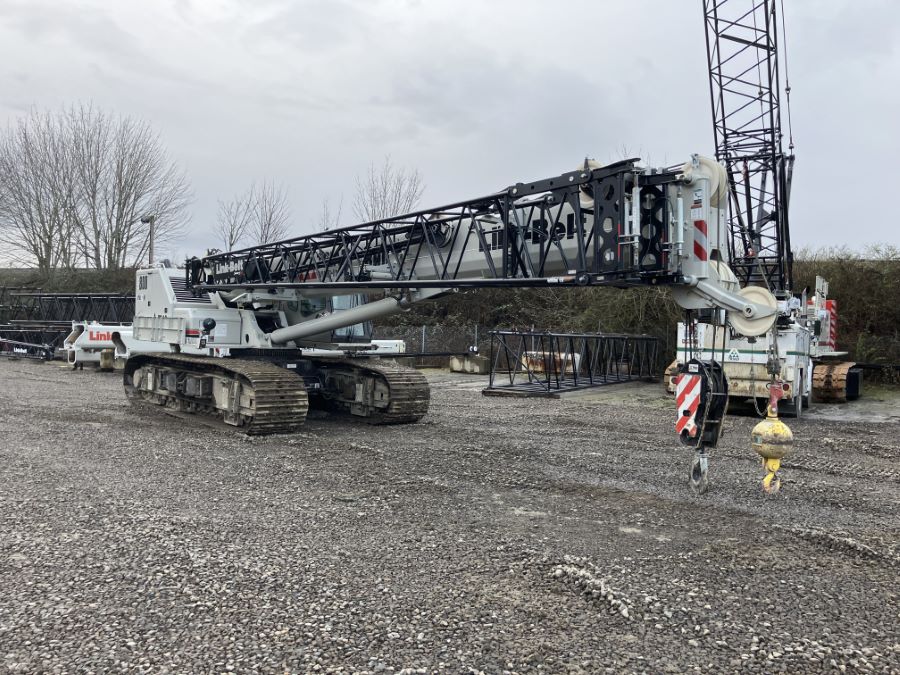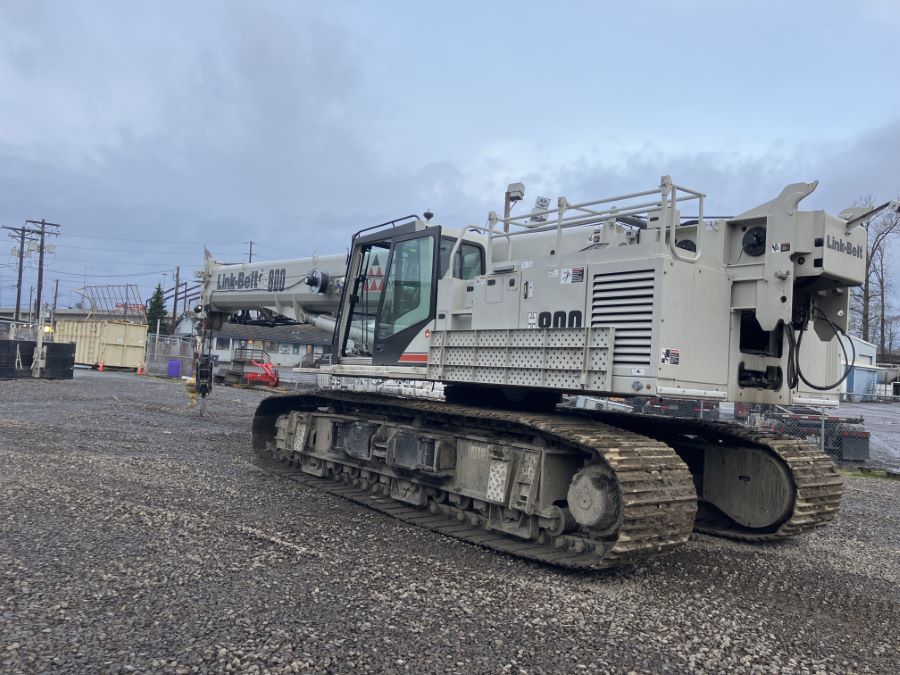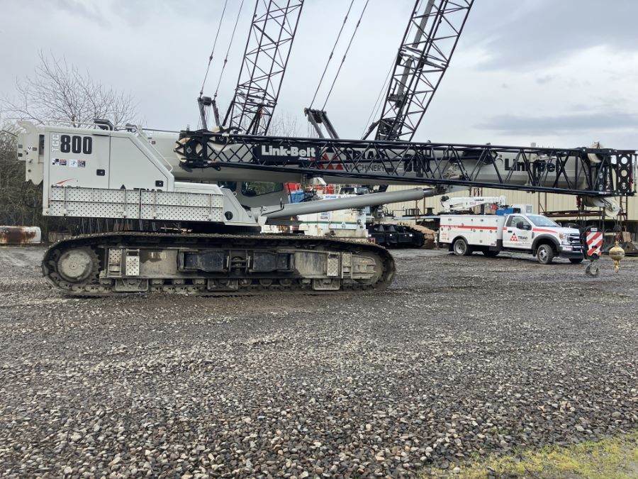 Triad Machinery Rental Fleet Link-Belt TCC-800 telescopic crawler crane equipped with 2 piece bifold fly, 60 ton 3 sheave hook block and 12 ton hook ball.