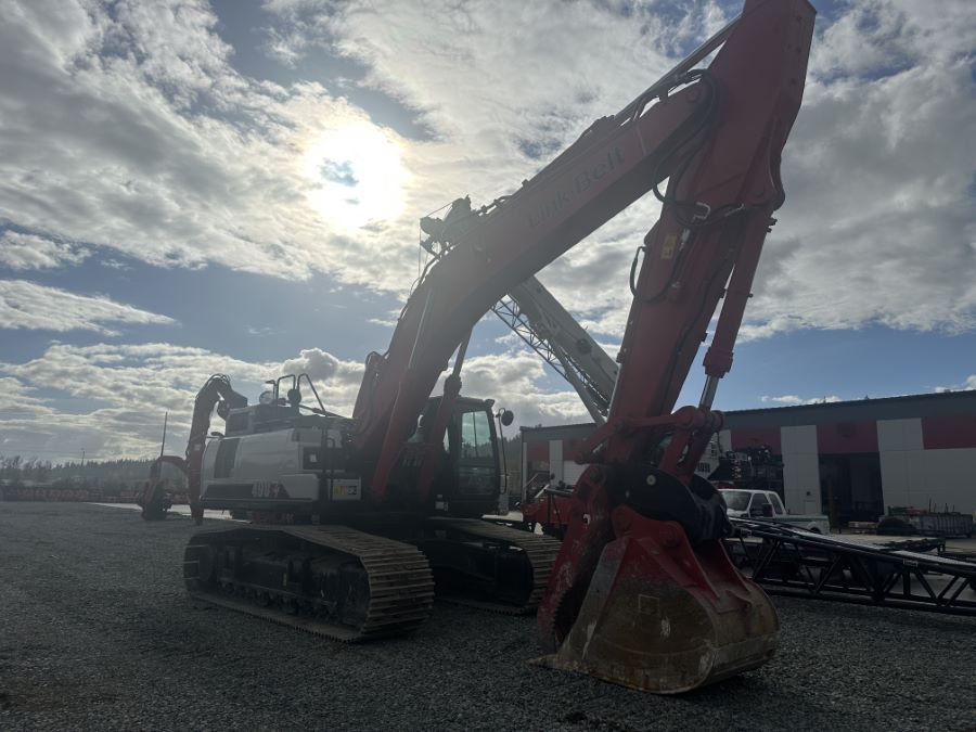 Triad Machinery Rental Fleet Link-Belt 490X4 excavator equipped with Waves camera system, RemoteCARE telematics, ESCO Quick Attach, Weldco Beals Pro-Link Thumb and Weldco Beals Heavy Duty 54” Dig Bucket.